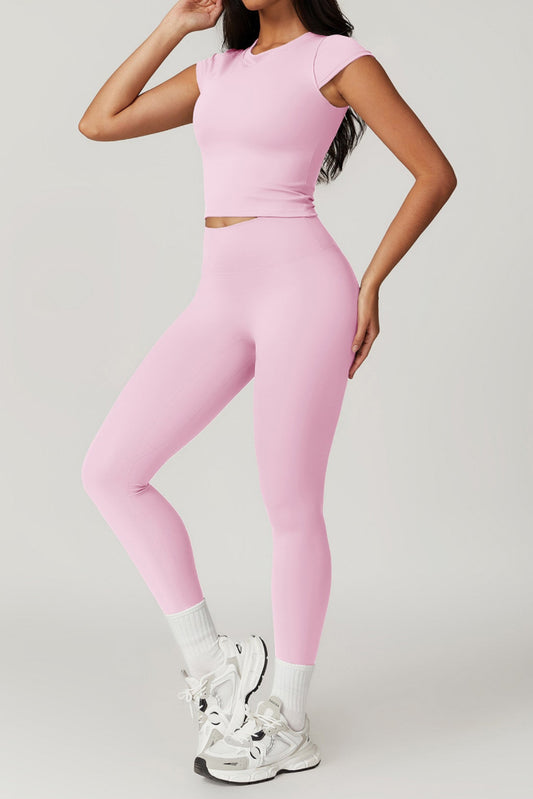 Solid Color Stretchy Extra Short Sleeve And High Waisted Legging Set