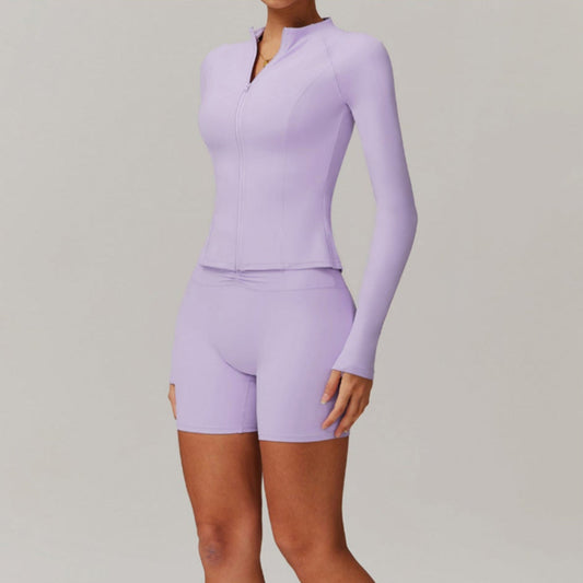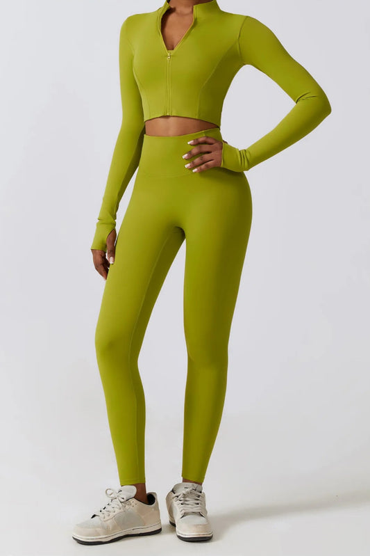 Solid Color Stretchy Front Zip-Up Jacket And Legging Set