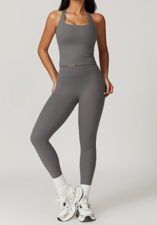 Solid Color Stretchy Sleeveless Halter And High Waisted Legging Set