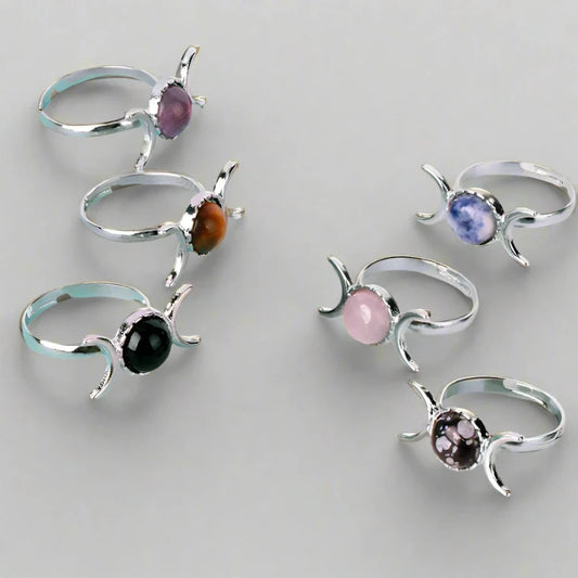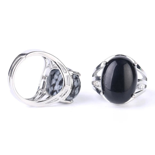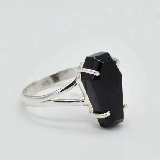 Silver Metal Coffin Black Obsidian Crystal Ring