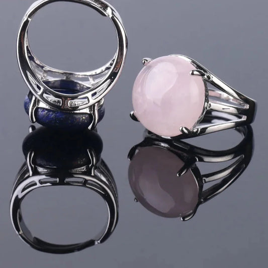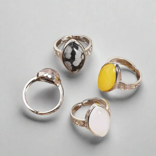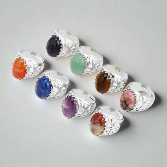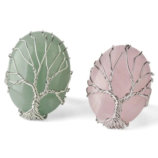 Silver Metal Tree Of Life Polished Oval Crystal Ring