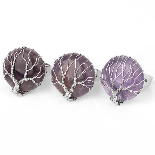 Silver Metal Tree of Life Polished Circle Crystal Ring