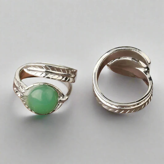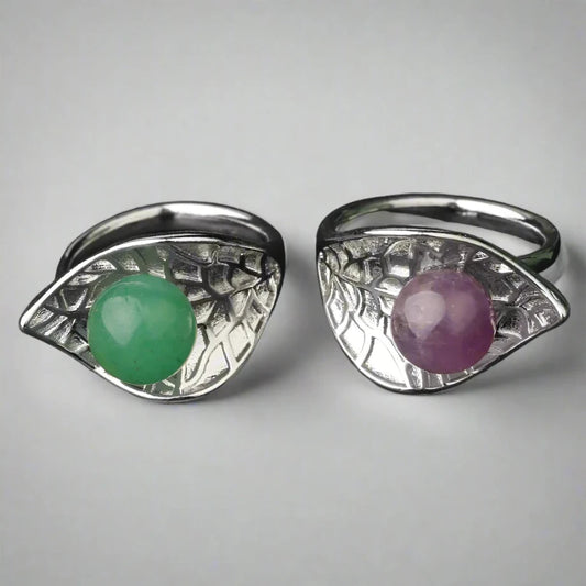Silver Metal Lotus leaf Polished Crystal Ball Ring