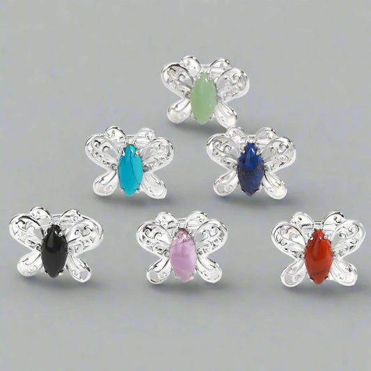 Silver Metal Butterfly Polished Marquise Crystal Ring