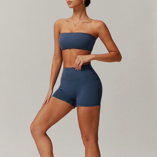 Solid Color Stretchy Bralette And High Waisted Shorts Set