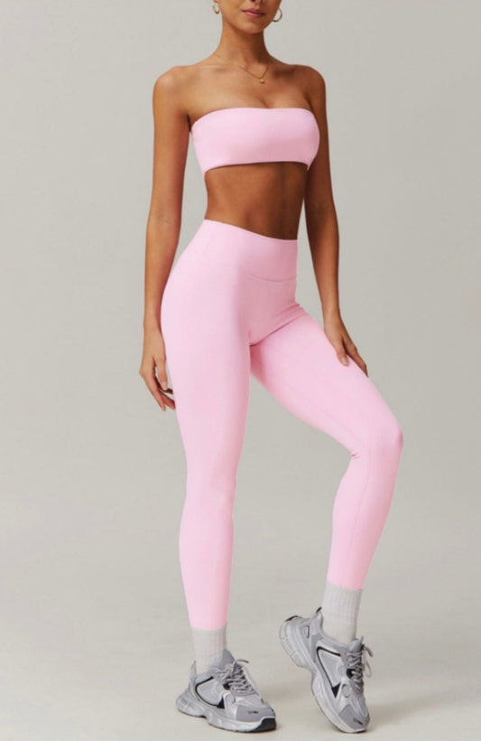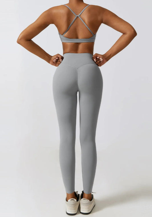 Solid Color Stretchy Bralette And High Waisted Legging Set