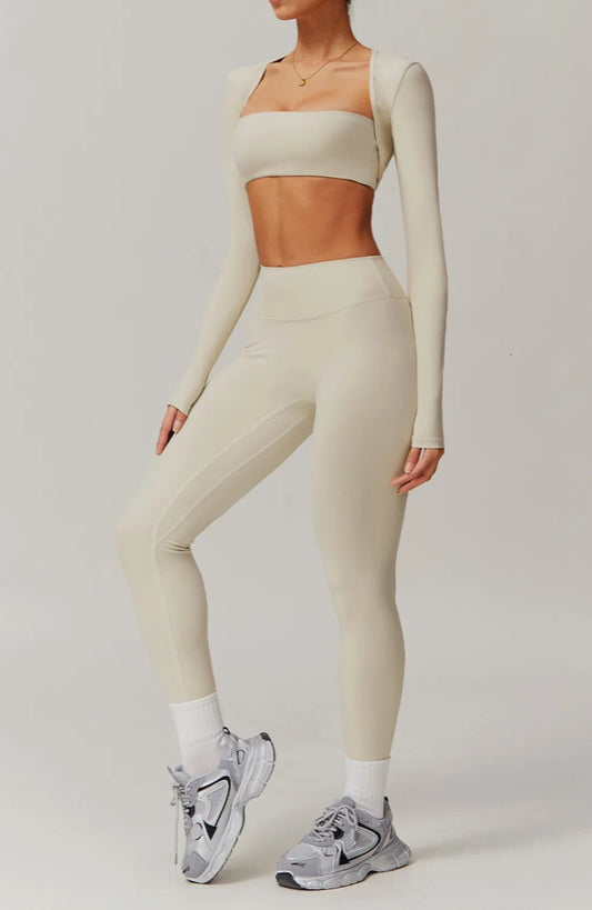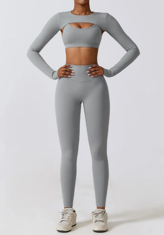 Solid Color Stretchy Cardigan And Bralette And High Waisted Legging Set