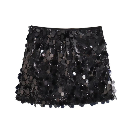 Solid Color Sequin Mini Skirt
