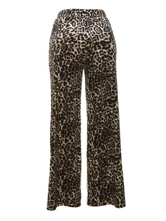 Brown Cheetah Sequin High Waisted Loose Pants