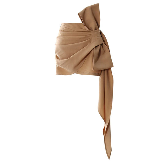 Neutral Pleated Side Bow Mini Skirt