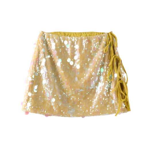 Neon Solid Color Sequin Side Tie-Up Mini Skirt