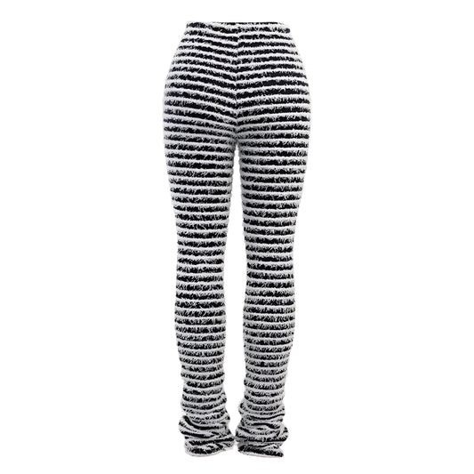 Neutral Fuzzy Knit Stripe High Waisted Pants