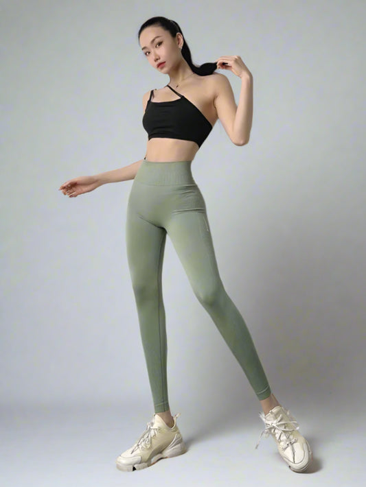 Solid Color Stretchy Side Ribbed Push-Up Booty High Waisted Leggings