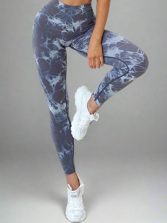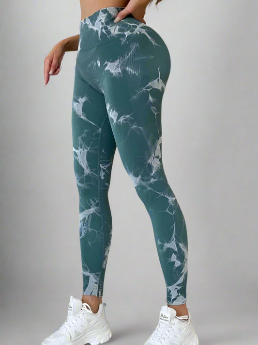 White And Solid Color Tie-Dye Stretchy Ruched Push-Up High Waisted Leggings