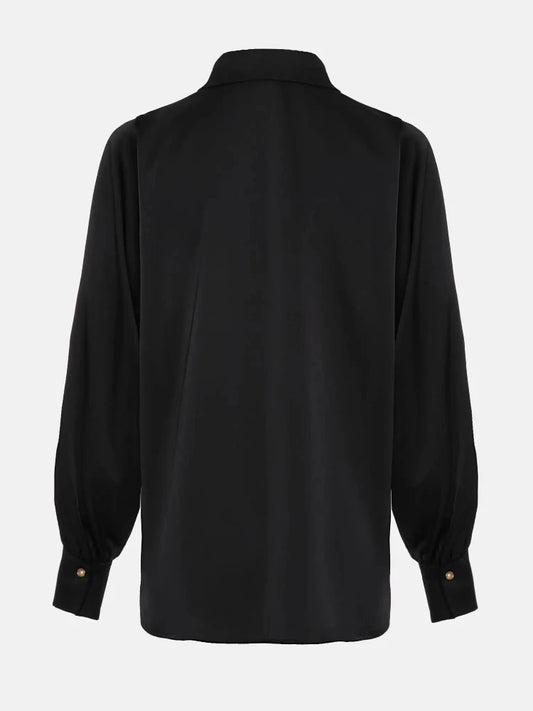 Solid Color Silk Collar Hollow Out Button Up Long Sleeve