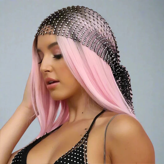 Neutral Rhinestone Studded Black-Tie Hair Scarf