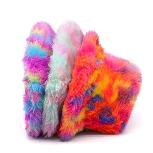 Multicolor Swirl Long Fur Fluffy Bucket Hat