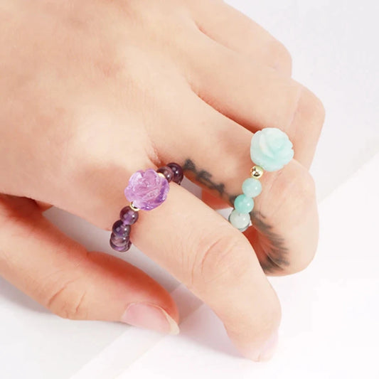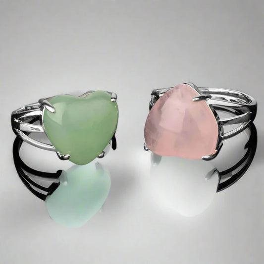 Polished Rose Quartz Crystal Ball Heart Letter Ring