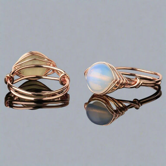 Copper Metal Swirl Hollow Out Polished Round Crystal Adjustable Ring