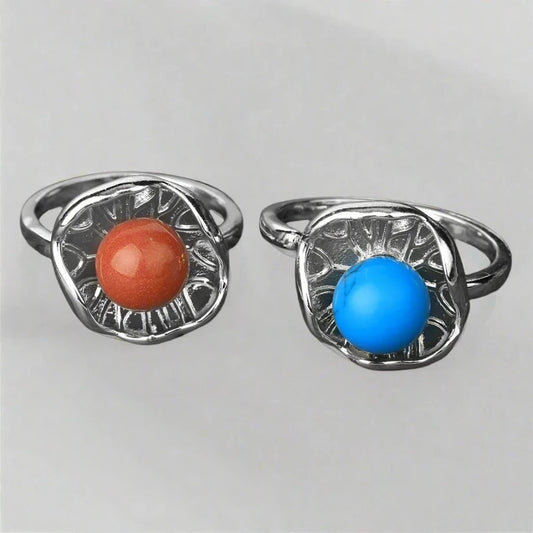 Silver Metal Lotus leaf Polished Crystal Ball Ring