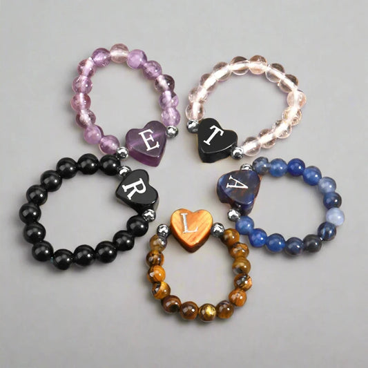 Polished Tigers Eye Crystal Ball Heart Letter Ring