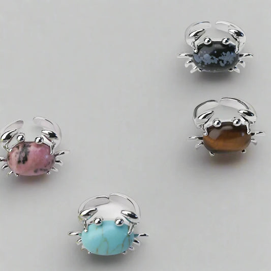 Polished Clear Quartz Crystal Ball Heart Letter Ring