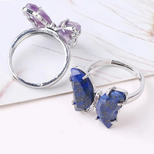 Metal Rhinestone Butterfly Polished Crystal Ring