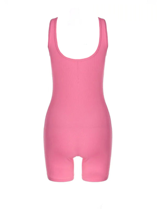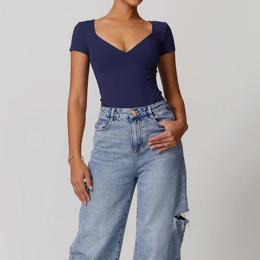 Solid Color Stretchy Patchwork V-Cut Short Sleeve Bodysuit