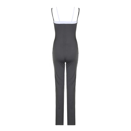 Gray And White Patchwork Under Shirt Spaghetti Strap Straight Jumpsuit