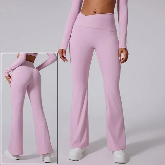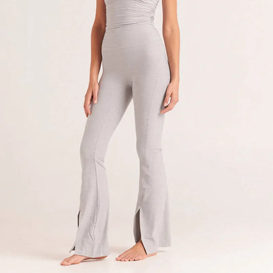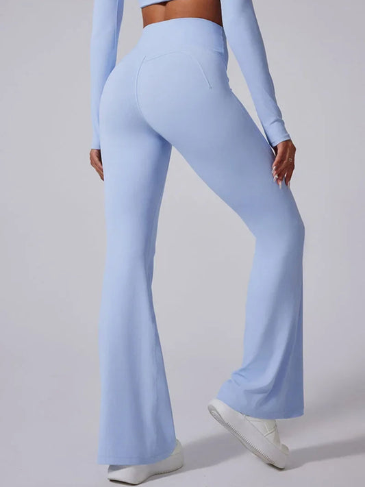 Solid Color Stretchy Side V-Cut High Waisted Flare Pants